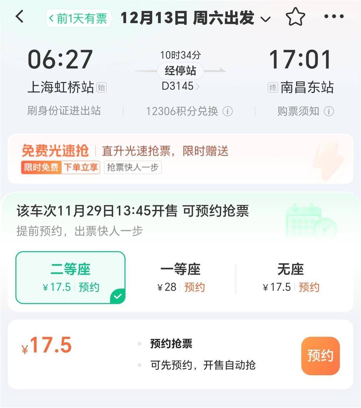 11月27日盈透科技,有网友发视频称,同程旅行APP显示上海虹桥至南昌东的D3145次列车二等座票价仅17.5元盈透科技,该车运行时长10小时34分钟,低价车票引发热议。